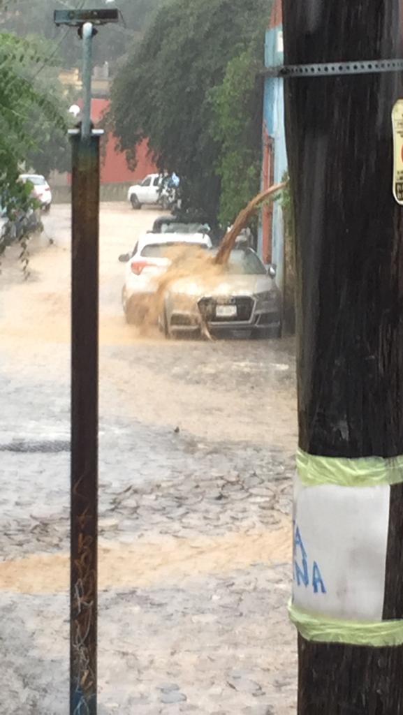 Asimismo sobre la carretera federal 190 en Santa Rosa, Columpio de Ixcotel y Cerro del fortín, las calles del Centro Histórico también reportaron incremento en el nivel del agua.