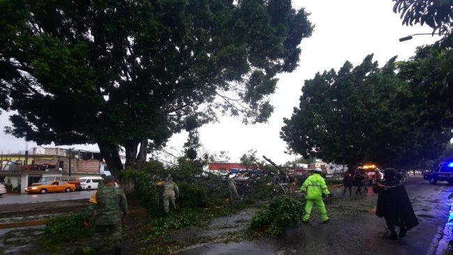 Frente a Piticó de periférico se registró la caída de un árbol de aproximadamente 25 metros de altura tapando los carriles en dirección a la glorieta Lázaro Cárdenas, por lo que el lugar llegaron elementos de Protección Civil así como del ejército para realizar la poda de este árbol y liberar la circulación; otro árbol cayó frente a la puerta principal del panteón general.