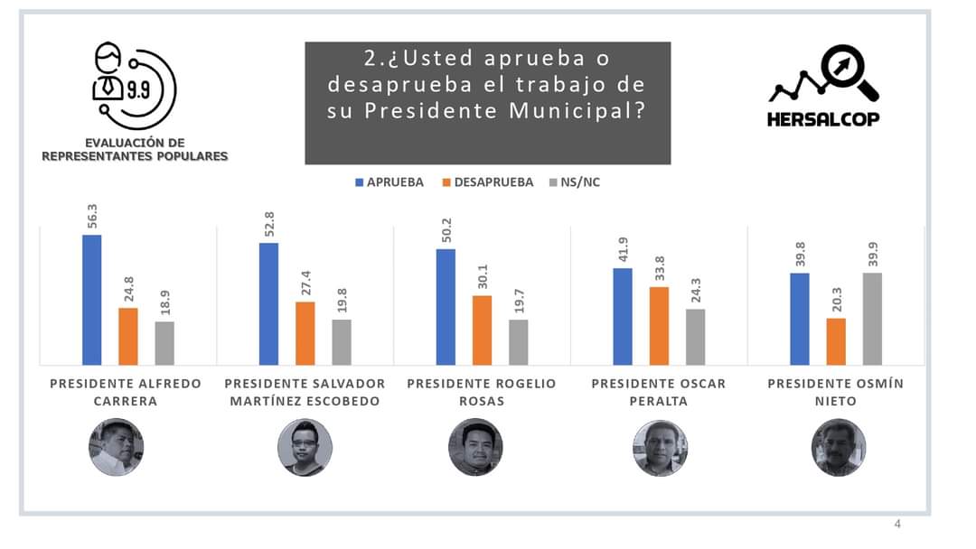 De acuerdo a un estudio de opinion públicada por la encuestadora Hersalcop Group para calificar el desempeño de los presidentes municipales del Distrito de Teotitlán quien está mejor calificado es Alfredo Carrera Hernández Presidente Municipal de San Lucas Zoquipam.