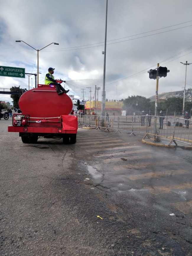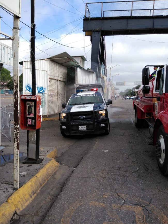 La Secretaría de Seguridad Pública de Oaxaca (SSPO) en coordinación con el H. Cuerpo de Bomberos y la Coordinación Estatal de Protección Civil (CEPCO) continúan con la limpieza y sanitización de la Central de Abasto, como parte de las acciones ordenas por el Gobernador Alejandro Murat para evitar la propagación de la pandemia del COVID-19.