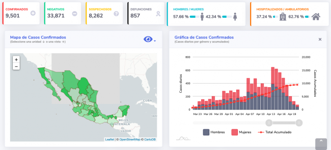 De manera diaria la Secretaría de Salud del Gobierno de México (SSA), reportó al día de hoy un aumento de 729 casos de Covid-19 a nivel nacional, llegando a 9 mil 501 casos confirmados, 8 mi 262 sospechosos y aumentaron 145 defunciones quedando un total de 857.