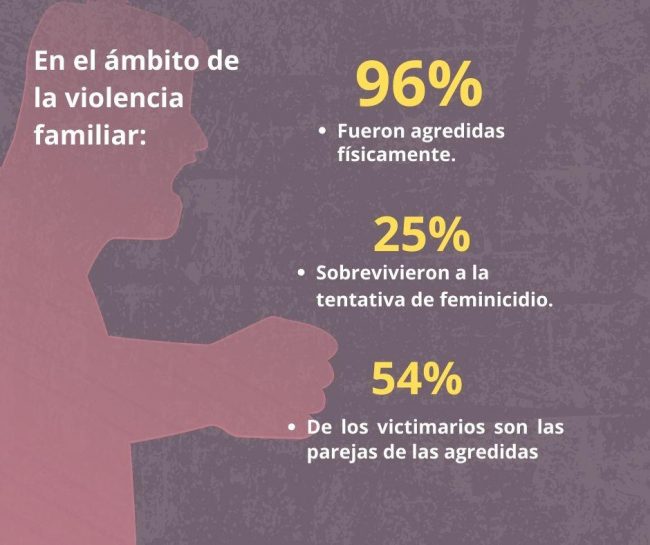 La organización también señala que en los últimos tres meses del confinamiento en Oaxaca, 96% de las mujeres víctimas de violencia familiar fueron agredidas físicamente (27 casos) de las cuales 25% sobrevivieron a la tentativa de feminicidio (7 casos).