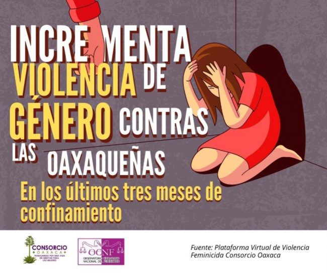 De acuerdo con el informe “La pandemia ignorada”. Situación de las mujeres en Oaxaca en Contexto de COVID-19, la organización feminista recabi datos e información centrada en el incremento de la violencia doméstica contra las mujeres, específicamente para el periodo de la pandemia COVID-19 comprendido entre el 21 de marzo y el 21 de junio de 2020, donde las cifras de mujeres desaparecidas y la violencia familiar en la entidad, ya mostraban un incremento preocupante respecto al primer trimestre del año 2020 (Véase informe completo en https://consorciooaxaca.org/violencia-feminicida-la-pandemia-ignorada/).