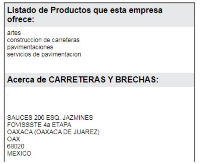 De una simple búsqueda en internet, se pudo advertir que los domicilios de diversas empresas que han tenido jugosos negocios en CAO son terrenos baldíos o casas habitación en donde sus habitantes dicen desconocer a estas empresas MILLONARIAS.
