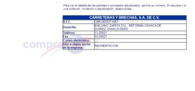 A esta empresa que concursó en conjunto con CONSULTORES DE LA CUENCA SA DE CV las obras que recientemente se licitaron para “la reactivación económica” y para que los constructores oaxaqueños no quebraran y generaran empleos, se le adjudicaron tres contratos por los montos siguientes: $9,498,507.09 $24,900,006.80 y $19,280,003.65 en suma a esta “empresa” le adjudicó: $53,669,517.54