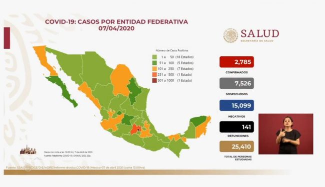 El corte de este martes 7 de abril del 2019 a nivel nacional suman 2 785 casos positivos, 7 526 sospechosos y 141 defunciones.