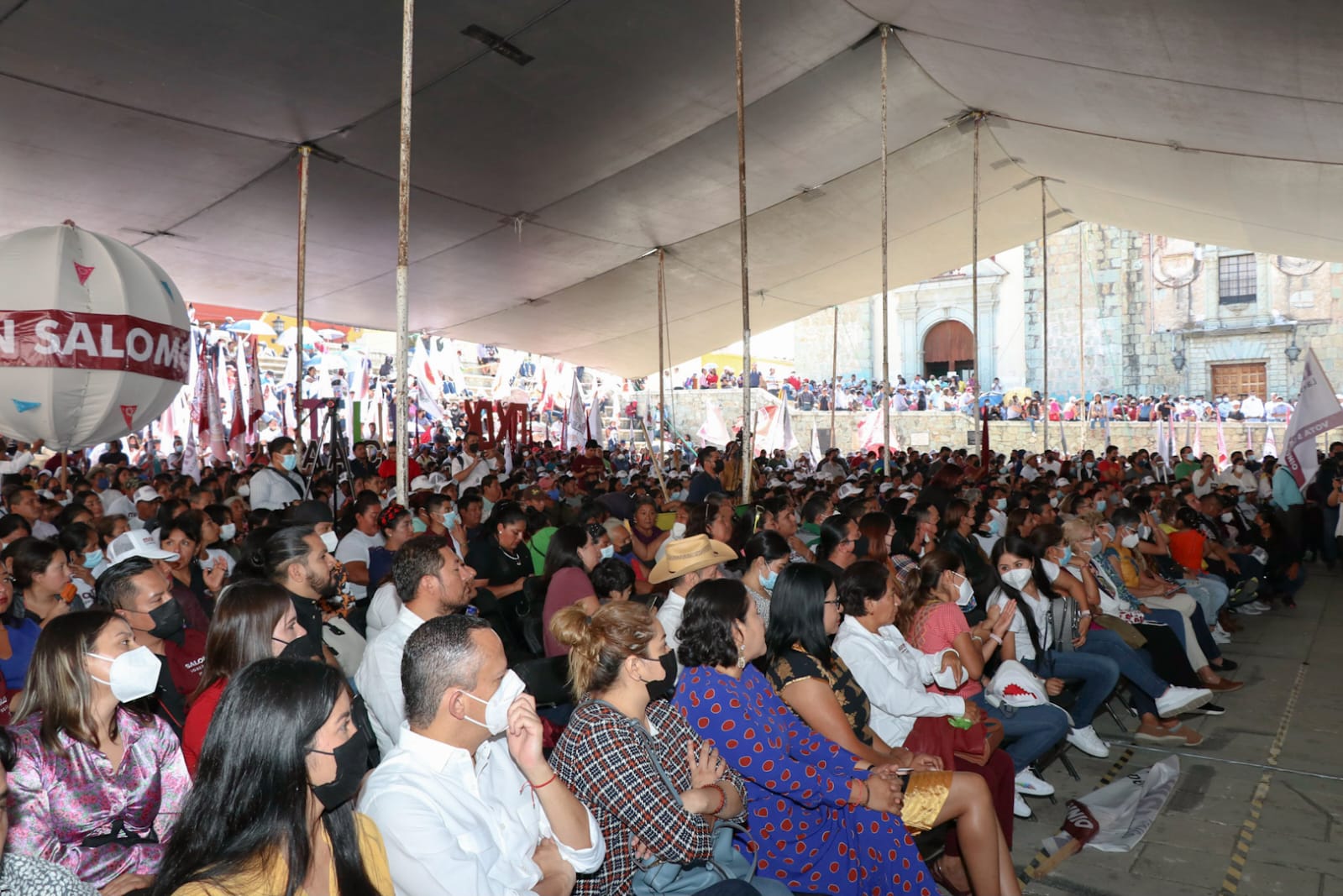 En la Plaza de la Danza del municipio capitalino se congregaron Benjamín Viveros Montalvo, presidente del CEE Morena Oaxaca; Salomón Jara Cruz, gobernador electo, diputadas y diputados federales y locales, presidentas y presidentes municipales, referentes y simpatizantes para celebrar la llamada Victoria del Pueblo.