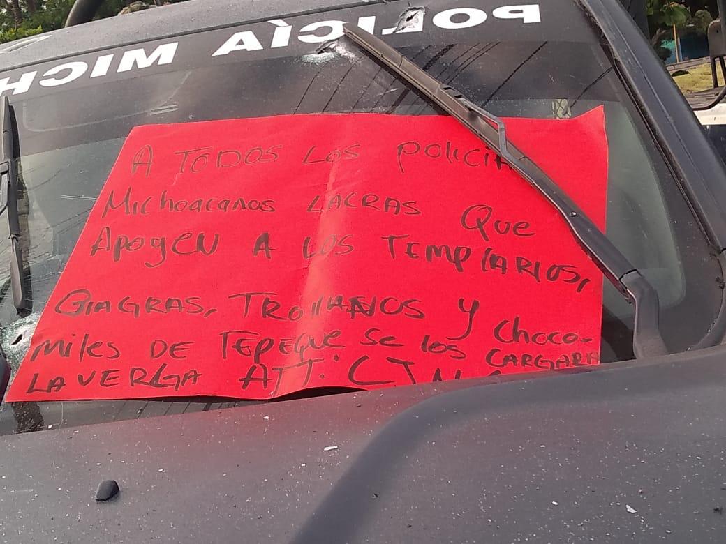Los delincuentes al superar en número a los uniformados se apoderaron de al menos dos patrulla a las cuales le colocaron narcomensaje, además de prenderle fuego.