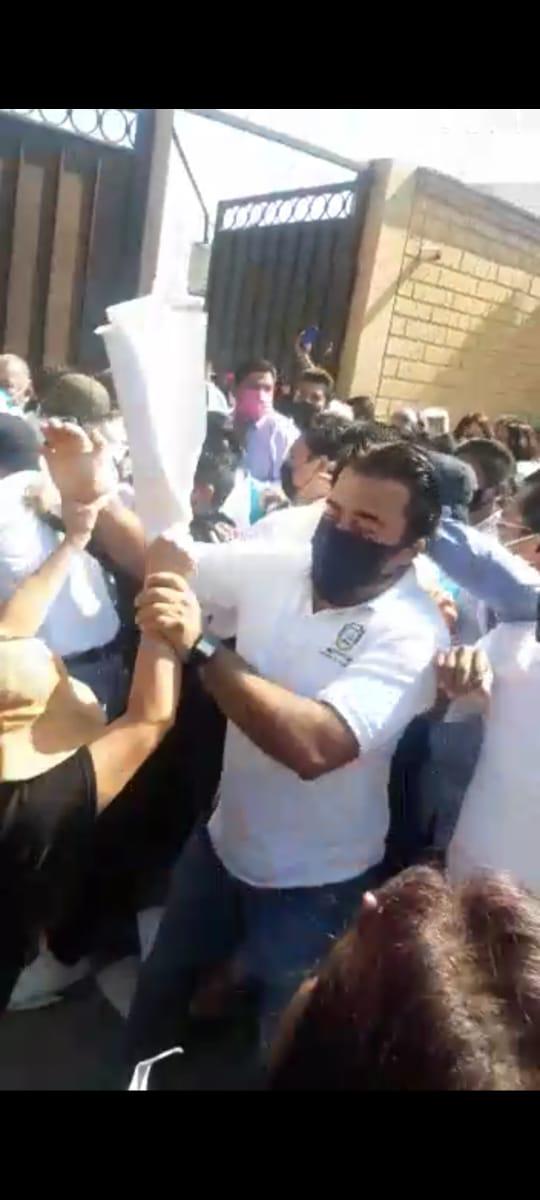 A través de un video difundido por este medio de comunicación y varios más, se pudo observar cómo grupos allegados a Cruz Villavicencio y de la planilla verde llegaron a la quinta Gloria en Santa Lucía del Camino, donde esta mañana ya se encontraban mujeres y hombres protestando de manera pacífica para exigir se respetaran los estatutos y se realice el cambio de comité ya que su periódo fenece el próximo mes de abril y ya no le corresponde llevar a cabo las negociaciones de este año.
