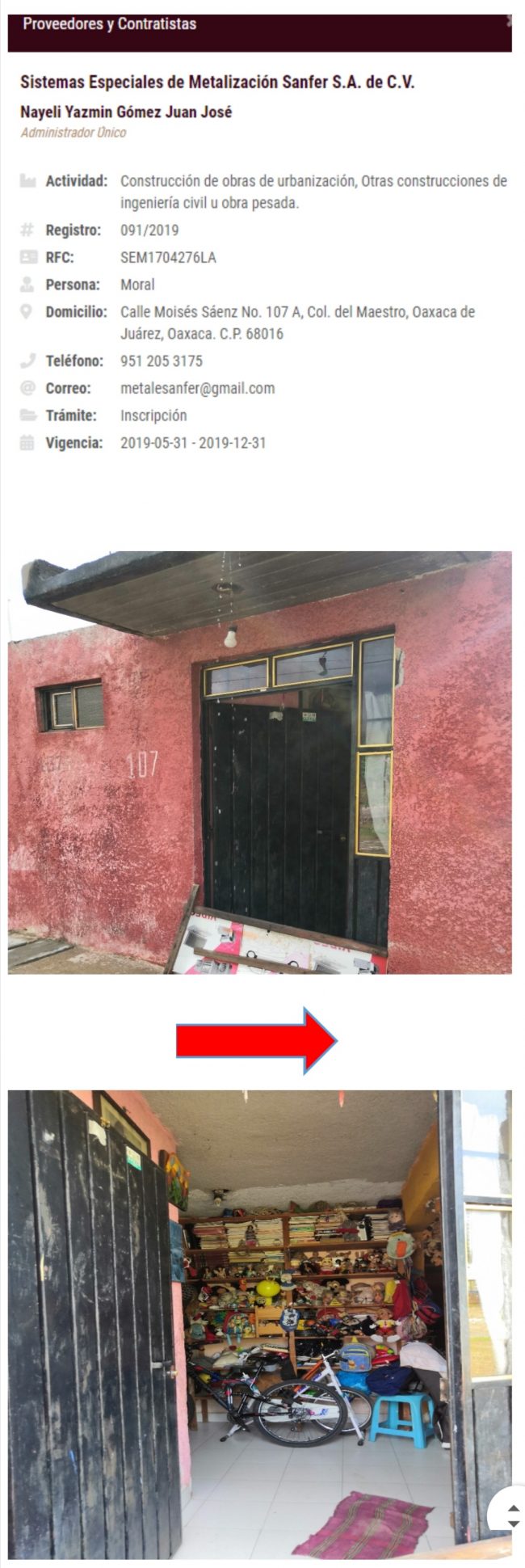 Esto es por un lado la lista del SAT que hasta el día de hoy ha publicado, y tenga por seguro querido lector que seguirán apareciendo las empresas de Mayren Carrasco en las listas del SAT, ya que seguimos investigando las demás empresas propiedad del Director de Caminos y Aeropistas de Oaxaca y la mayoría de los domicilios son inexistentes o domicilios de particulares que desconocen las empresas que ocupan esos domicilios como las siguientes;