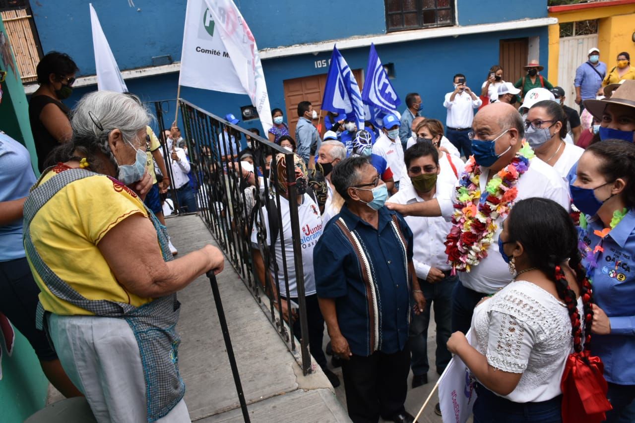 “Candidato cuenta conmigo porque ya queremos que vuelva lo bueno para Oaxaca”, dijo Jorge Mata, uno de los locatarios, al aspirante por el PRI, PAN y PRD a la presidencia municipal, quien sigue dando muestra de su convicción por el rescate de la grandeza de la capital.