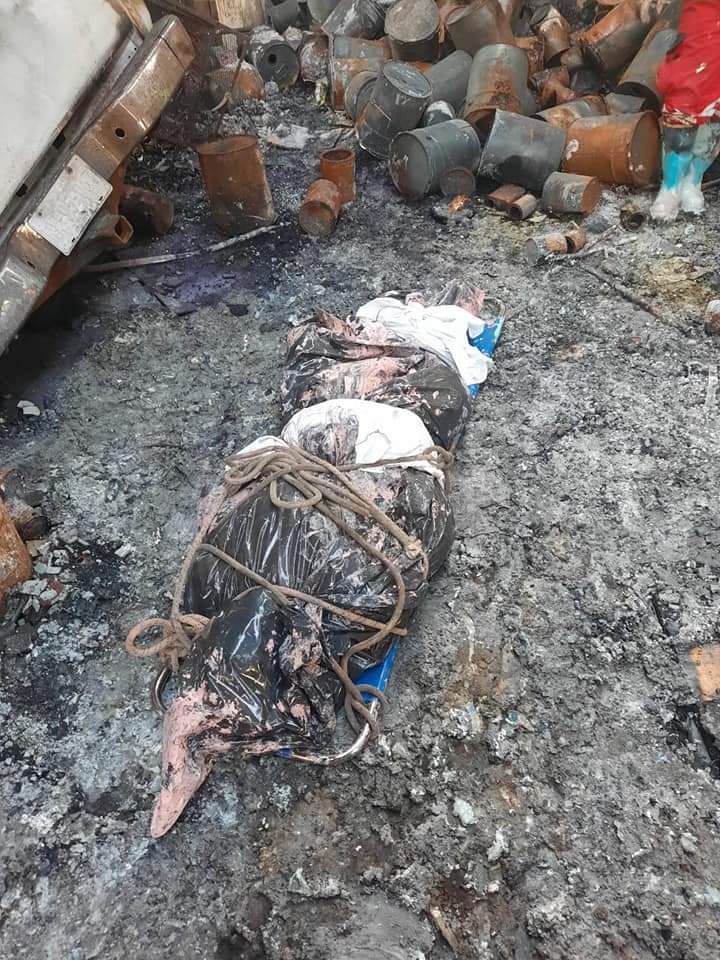Personal de Bomberos, así como de la FGJEO laboraron en la bodega de Sayer Lack para realizan el levantamiento del cuerpo calcinado y trasladarlo al instituto de servicios Periciales de la Fiscalía General del Estado de Oaxaca, para verificar la identidad del cadáver.