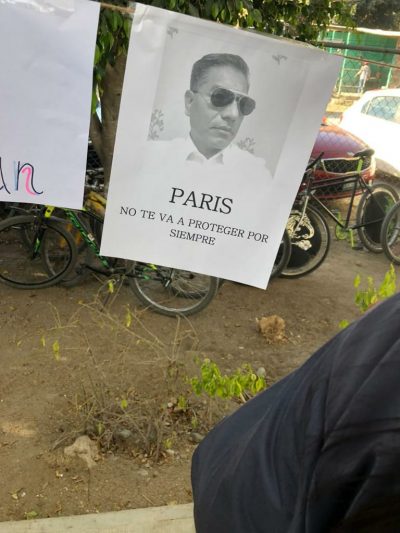 Una de las estudiantes cubiertas con un pañuelo verde en el rostro se acercó a la puerta del salón sin empezó a gritarle al profesor Jorge Cruz Sebastián, que saliera a enfrentar sus verdades ya que todas las jovencitas estaban en su contra.