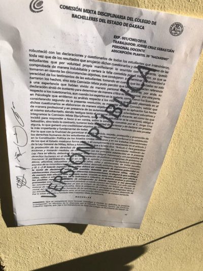 Las alumnas presentaron un documento que se había firmado meses antes con la dirección del plantel educativo donde habían expuesto la situación, en la que se sumaron 14 quejas de estudiantes que fueron acosadas.