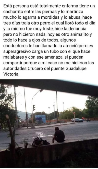 La denuncia la realizaron usuarios de redes sociales al identificar a malabarista del Puente Guadalupe Victoria, como presunto violador de perros callejeros.