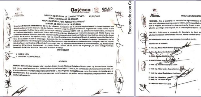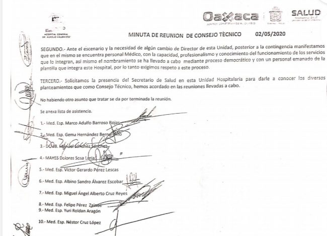La base trabajadora calificó la decisión como un acto de represión y hostigamiento por parte del mandatario estatal y el secretario de los Servicios de Salud Donato Casas; los trabajadores firmaron una minuta donde rechazaban el nombramiento de Jesús Alejandro Ramírez Figueroa, como nuevo director por parte de los Servicios de Salud de Oaxaca (SSO).
