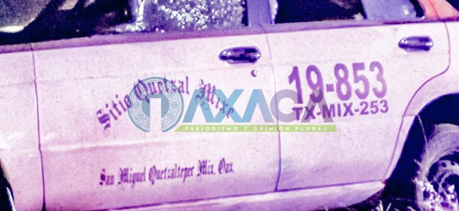 El cuerpo de Carlos F. V. quedó tendido al interior del taxi tipo Tsuru del sitio Quetzaltepec Mixe, de San Miguel Quetzaltepec,