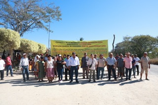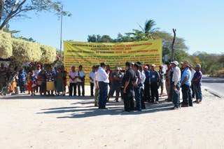SAN PEDRO HUAMELULA, OAX.- Integrantes de la Sociedad Agrícola y Ganadera “El Coyul Oax” S. C. se manifestaron en la carretera Costera en la población de El Coyul, perteneciente a San Pedro Huamelula, para exigir a las autoridades estatales, frenar a un grupo de pobladores quienes usurpando el nombre de esa organización, pretenden apoderarse de más de mil 400 hectáreas de tierra.