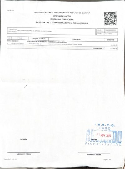 Oaxaca de Juárez, Oax., 23 de enero de 2026.— Al interior de la Unidad de Eventos del Instituto Estatal de Educación Pública de Oaxaca (IEEPO), trabajadores reportan un ambiente de creciente inconodidad ante presuntas irregularidades administrativas y financieras que, aseguran, no han sido aclaradas públicamente por la titular del área, Isabel Pineda Sales.