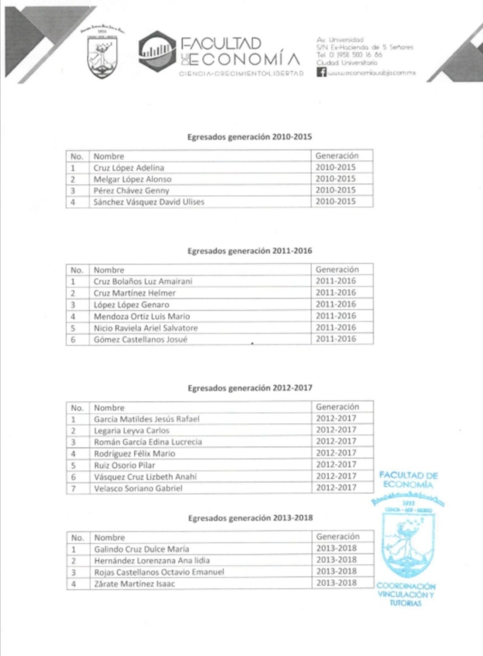 Los números de egresados a partir de ese año también son alarmantes, según la página de normatividad y transparencia de la Facultad de Economía, en el año 2016 egresaron seis estudiantes, en 2017 siete estudiantes y el último reporte de 2018 sólo cuatro universitarios culminaron la licenciatura.