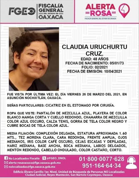 Claudia Uruchurtu fue desaparecida el pasado 26 de marzo alrededor de las 22:00 horas, después de que participara en una protesta pública en contra de la presidenta, por uso indebido de recursos en el citado municipio.