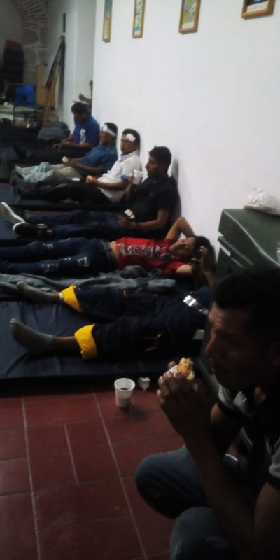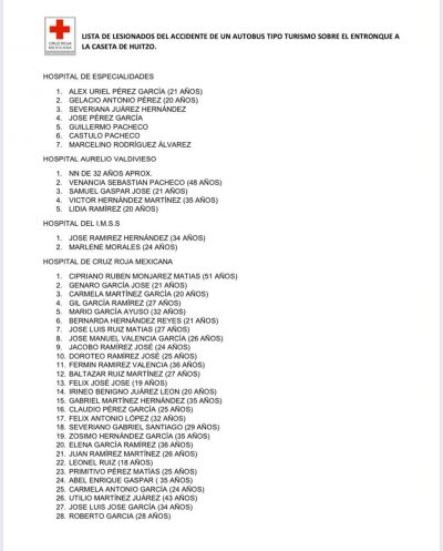 La Cruz Roja Mexicana delegación Oaxaca con el apoyo de la CEPCO, DIF estatal y Servicios de Salud de Oaxaca, habilitaron el albergue temporal para que puedan pasar la noche 20 lesionados, 4 más quedan internados en el hospital de Cruz Roja y algunos familiares de los heridos del accidente que ya arribaron a la capital, todos ellos del autobús accidentado, en espera de que mañana recuperen sus pertenencias y continúen su viaje a sus lugares de origen.