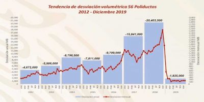 Romero Oropeza destacó además la reducción de 94.8 por ciento de los barriles diarios robados entre diciembre de 2018 y diciembre de 2019, ya que la cifra pasó de 97 a 5 mil, respectivamente.