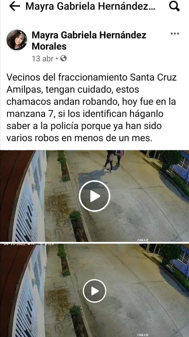 Tras la denuncia, la pareja de maleantes continúa rondando la zona y amenazando a sus víctimas, por lo cual exigen que la autoridad de Santa Cruz Amilpas, duplique la seguridad en la comunidad.
