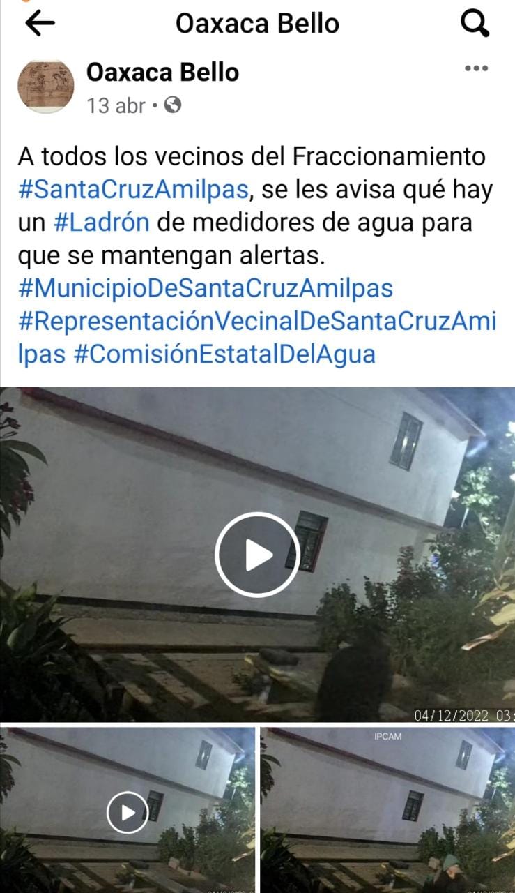 Esa misma semana, cuatro medidores y tuberías de cobre, fueron robadas en la zona, dos quedaron captadas y denunciadas en redes sociales.