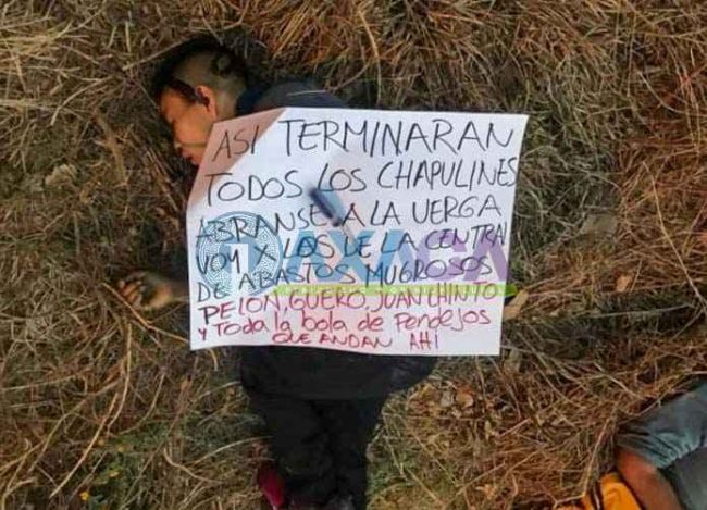 Decían las cartulinas que dejaron en los cuerpos de los ahora occisos.