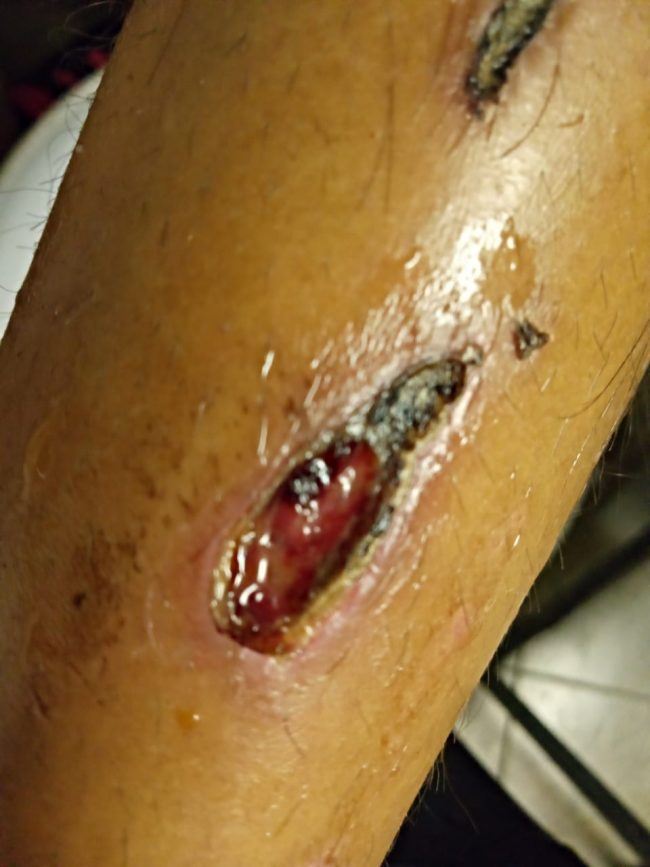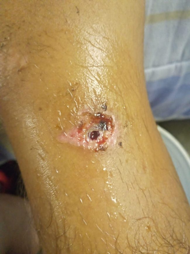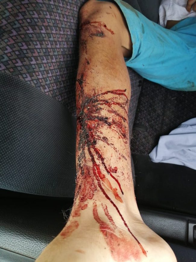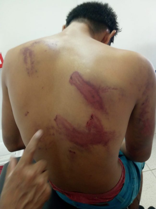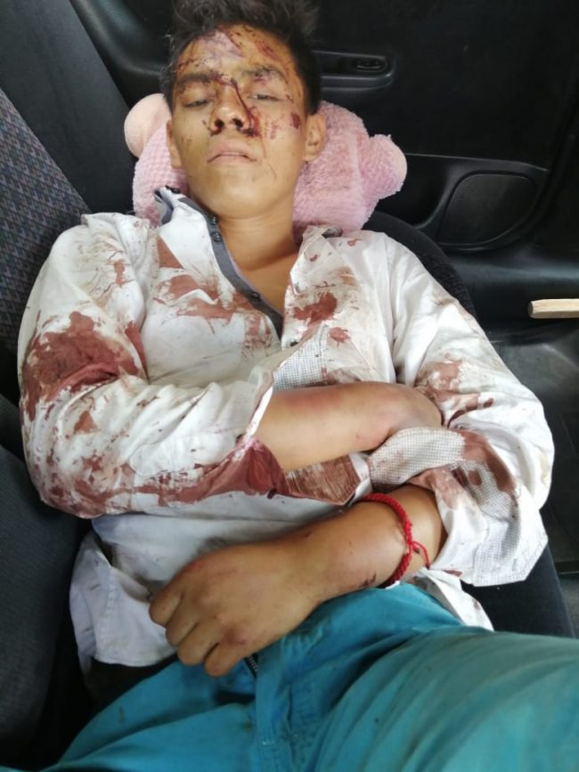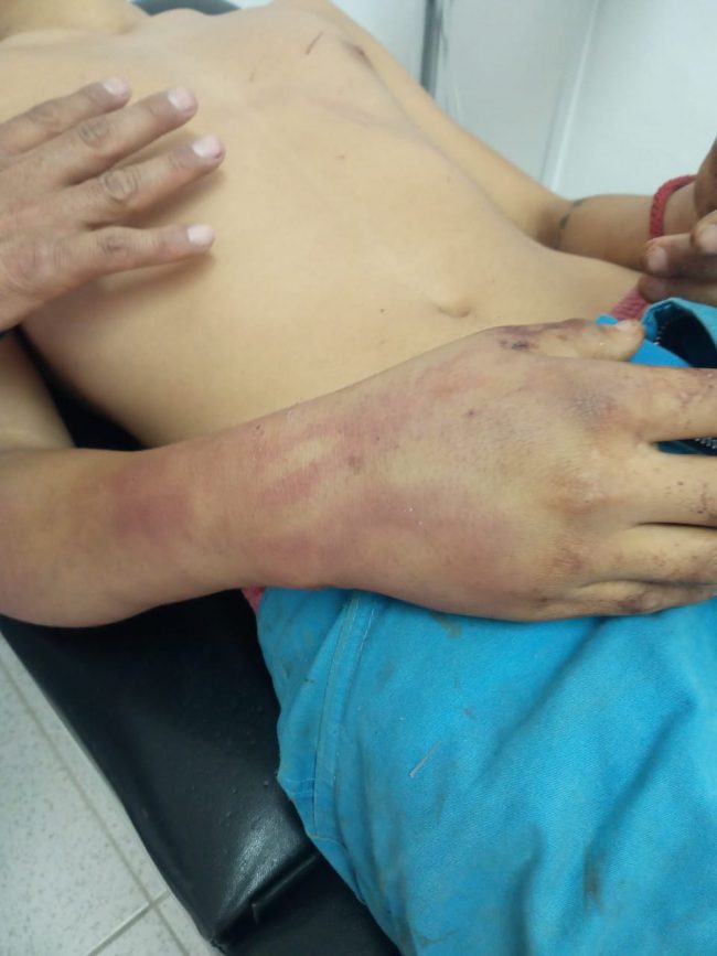 “Nos pegaron, aquí traigo las marcas mi mano me duele mucho pa’, poco menos de una hora nos pegaron ahí seguía la patrulla, escuché que aventaron alguien al Barranco y dije es mi hermano, a mi me seguían pegando y dejé de hacer gestos para que ya no me pegaran; me dieron como tres palazos en la cabeza que me hicieron retorcerme, me aventaron al Barranco y todavía bajaron y nos aventaron un piedrazo, yo si los reconozco a todo son familiares”