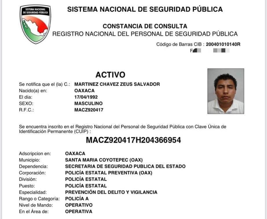 El policía estatal en activo Zeus Salvador Martínez Chávez, quedó evidenciado en el municipio de Santa Cruz Xoxoxotlán, luego de tomarse atribuciones que no le corresponden, pues a parte de cobrar sin trabajar en la Secretaría de Seguridad y Protección Ciudadana, en Xoxocotlán el decide que se hace y que no bajo el rango de Primera Dama en la Policía Municipal.