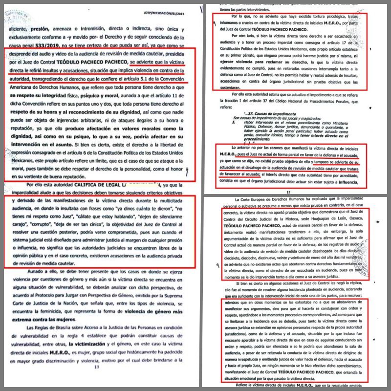 En esa ocasión puso en duda la imparcialidad en la actuación del Juez de control, Teódulo Pacheco Pacheco, de quién dijo había sido removido del caso por corrupción y porque ejercía violencia de género, sin embargo, esto no fue cierto ya que la Sala Colegiada del TSJ fue quien determinó relevar al Juez ante los constantes insultos y agresiones verbales que recibía de la víctima, que busca desesperadamente incidir con eso, en las determinaciones finales.
