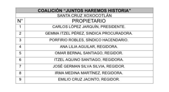 Este día se dio a conocer una planilla, que estaría conformado por Carlos López Jarquín como el candidato propietario para el municipio de Xoxo.