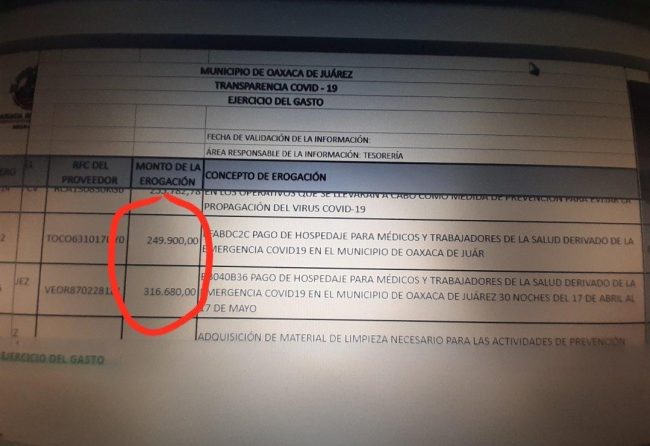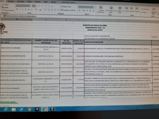 Oaxaca de Juárez Oax., 18 de junio del 2020.- De acuerdo con el portal de transparencia del municipio de Oaxaca de Juárez, encabezado por Oswaldo García Jarquín se realizó un gasto superior a los 26 millones de pesos, por supuestos gastos generados durante la contingencia por coronavirus.