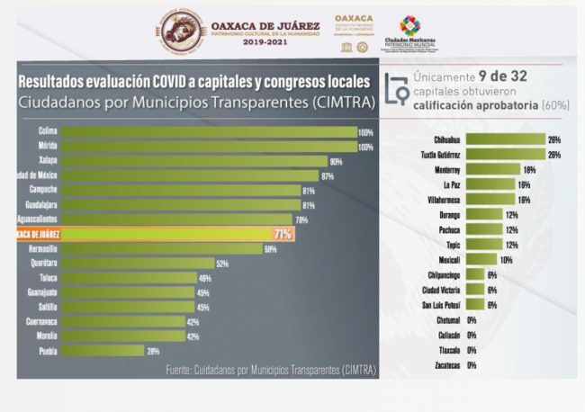 Según los medios digitales del municipio el Gobierno capitalino se ubicó en el sexto lugar de una evaluación realizada por el colectivo Ciudadanos por Municipios Transparentes (CIMTRA); la evaluación se hizo por medio de la información obtenida a través del portal de transparencia donde hay cifran mal justificadas y no especifican la calidad de productos comprados ni tampoco especifica qué se contrataron empresas fantasma y ligadas a desfalcos en años pasados.