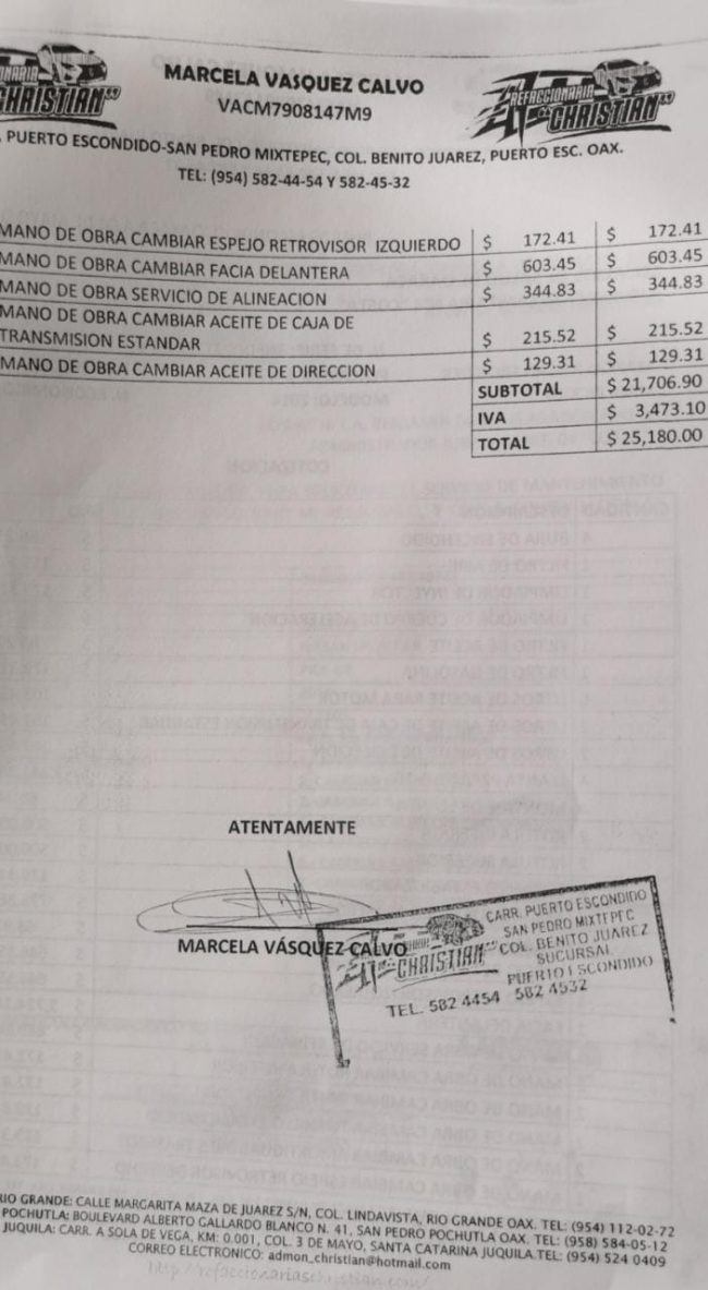 Incluso aquí también presentamos la factura de servicio que le realizaron a vehículo de Félix Ramírez Hernández, Organización del Comité Ejecutivo de la Sección 73 del SNTSA, la cual fue por una cantidad de más de 25 mil pesos, dinero que pagó la Secretaría de Salud de Oaxaca.