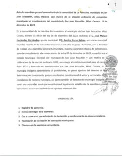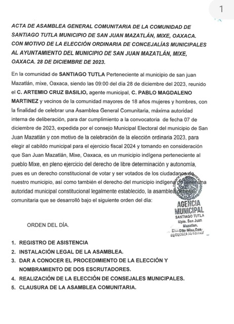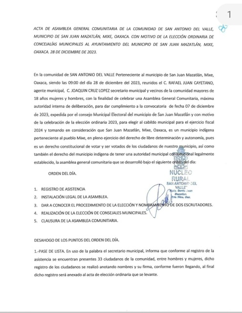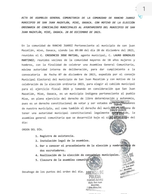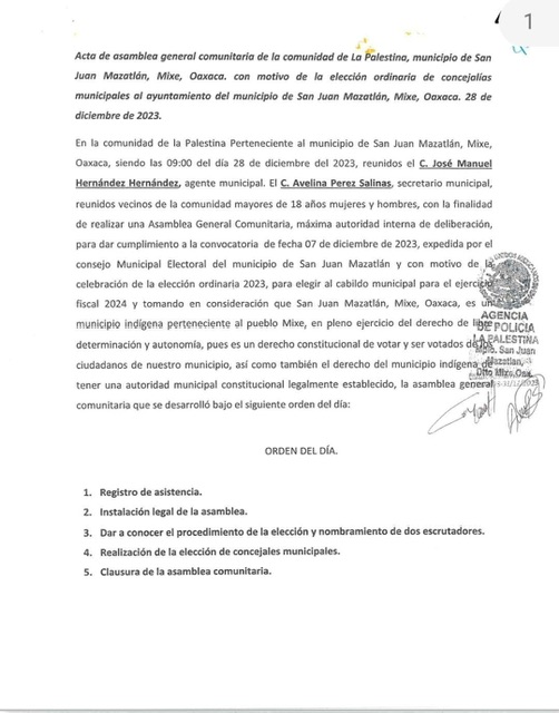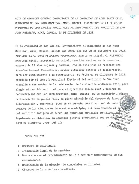 Istmo de Tehuatepec.- Habitantes y autoridades de siete comunidades de San Juan Mazatlán Mixes presentaron una serie de denuncias ante instancias ministeriales por el delito de falsificación de firmas y documentos en contra Plácido Martínez Soler.