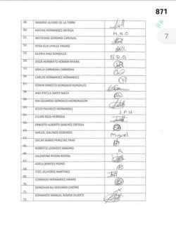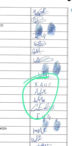 Al presentar las pruebas correspondientes, sostuvieron que ellos no participaron en el proceso de designación y denunciaron que entre la documentación falsificada, se encuentran sus firmas también fueron falsificadas, lo cual resulta evidente a simple cotejo.