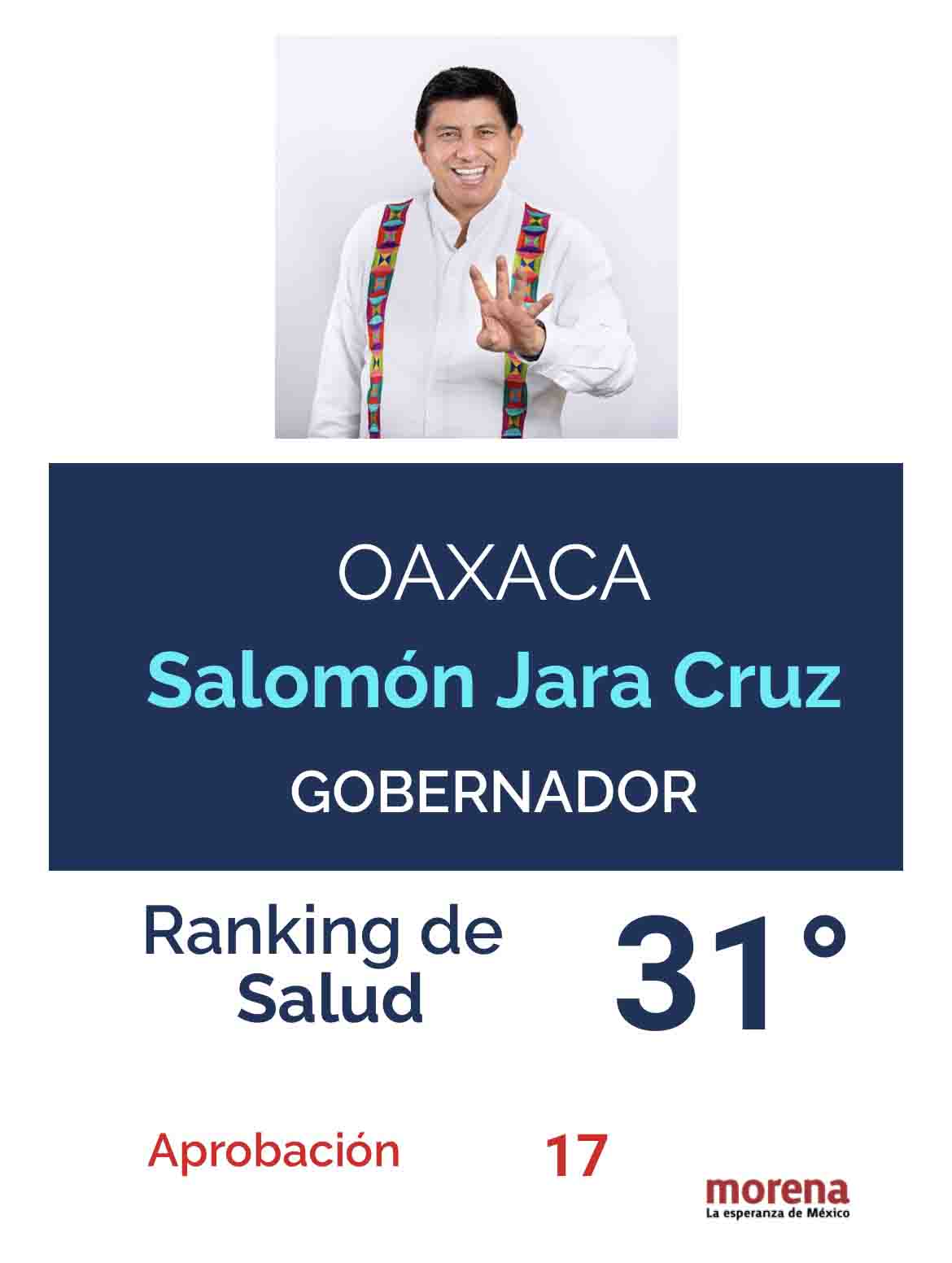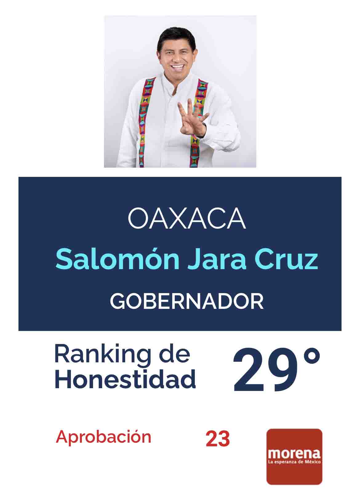 De acuerdo al ranking de gobernadores 2023, Jara Cruz, no cumple con los ejes rectores de Morena y se ubica en Honestidad entre los últimos cuatro lugares