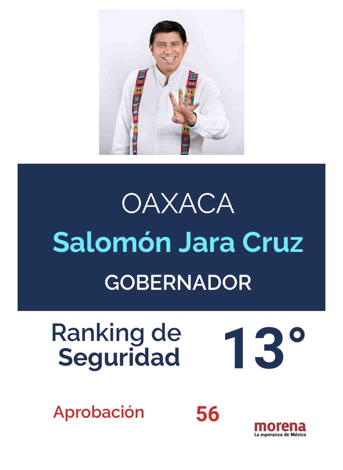 De acuerdo al ranking de gobernadores 2023, Jara Cruz, no ha podido garantizar la seguridad de los oaxaqueños