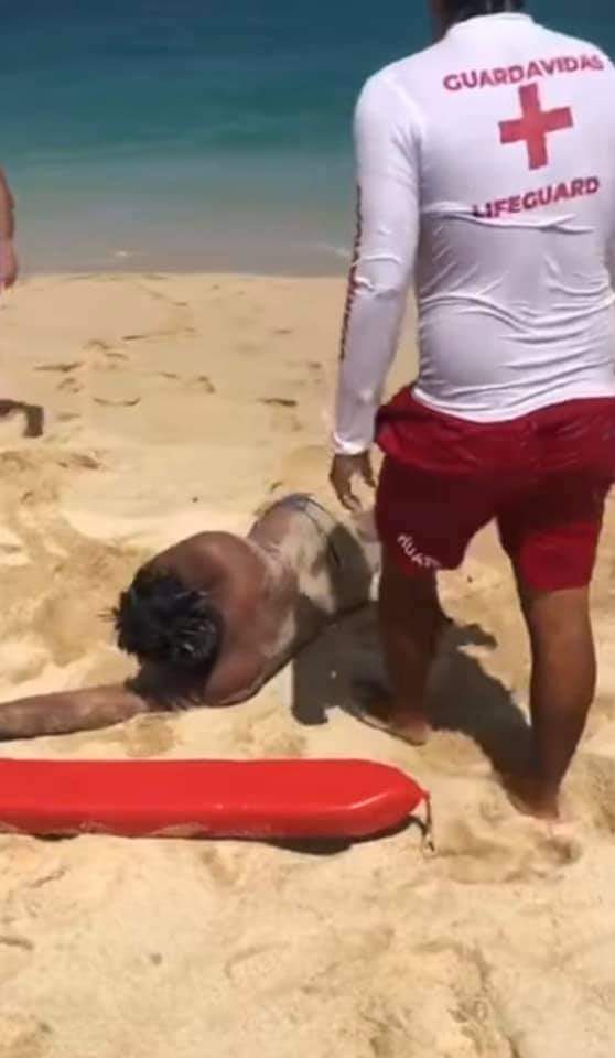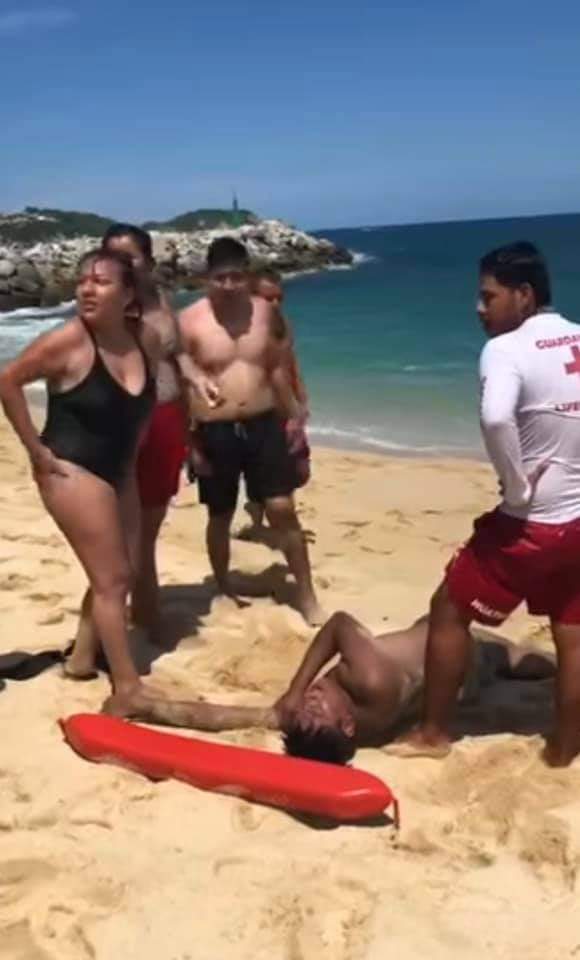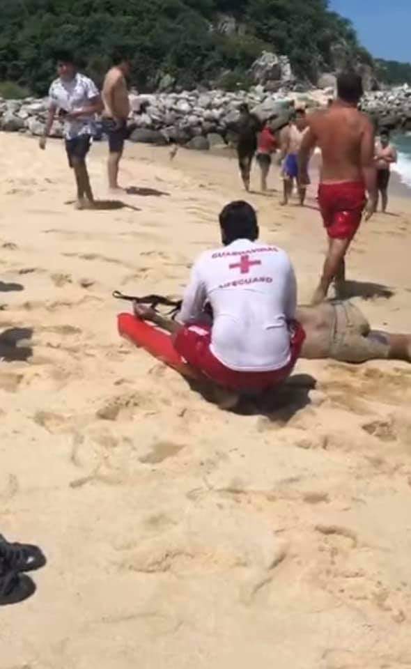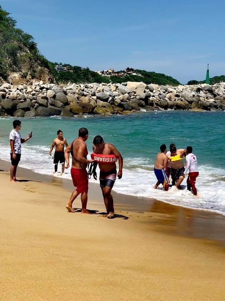 La tarde de ayer, Jesui Villalobos Cortez, Pedro Lara y Alejandro Ortíz, integrantes del cuerpo de salvavidas en la bahía de Chahué, Huatulco, rescataron a una persona de sexo masculino que se estaba ahogando.