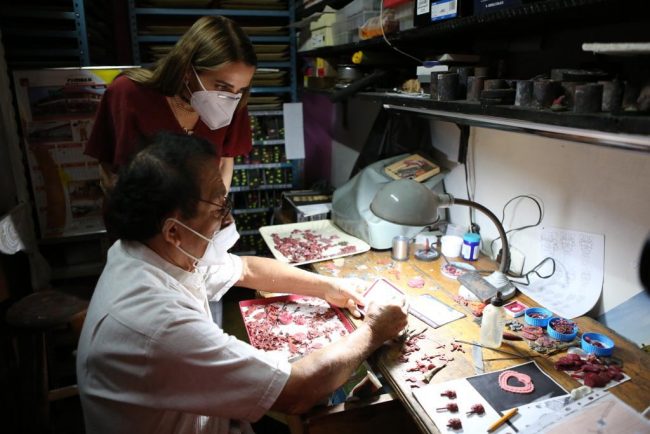 La Presidenta Honoraria del DIF resaltó que esta actividad ha pasado de generación en generación, y que actualmente los hermanos de Alejandra, así como las nuevas generaciones, trabajan la orfebrería. “Alondra, es una joven muy entusiasta, ella es la encargada del diseño de las piezas. Cada una de estas piezas tiene un diseño y técnica única. Los invitamos a visitar este lugar, para que puedan adquirir algún regalito que se les ofrezca, para este 14 de febrero. Vengan, visiten, no se arrepentirán”, finalizó la esposa del Mandatario Estatal.