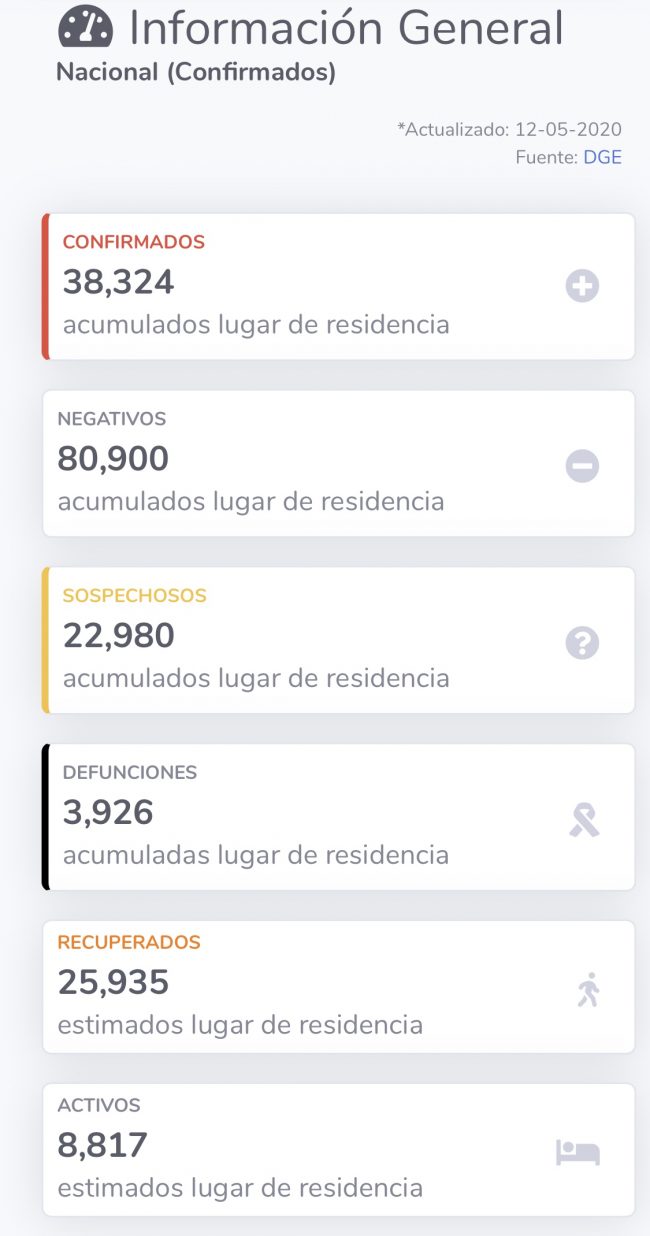 El corte diario emitido por la Secretaría de Salud Ssa hasta el momento a nivel nacional hay 38,324 casosCONFIRMADOS, 80,900 NEGATIVOS y 3,926 DEFUNCIONES.