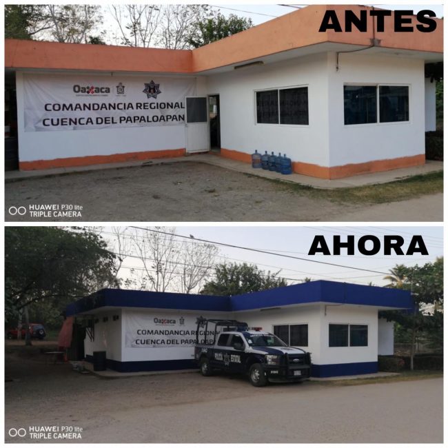 Tal es el caso de la Comandancia ubicada en San Juan Bautista Tuxtepec, en donde a la par del inicio del operativo especial en los límites con el estado de Veracruz, se inició con el reacondicionamiento del lugar para que los elementos de la Policía Estatal desplegados en la zona, pudieran tener un espacio digno donde coordinar sus actividades y pernoctar. En ese sentido, se realizó el reemplazo de vidrios rotos, techado, entre otras reparaciones; a las que se sumarán una serie de otras mejoras que se estarán realizando o adecuando en las próximas semanas.
