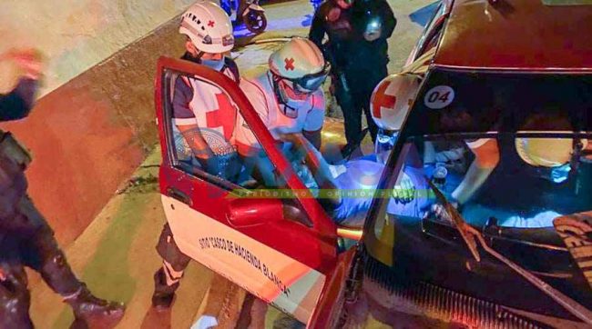 Los policías municipales de inmediato empezaron a revisar la unidad donde lograron recuperar las armas con las que momentos antes habían asaltado por su parte el conductor fue trasladado por paramédicos de la Cruz Roja al hospital donde recibir atención médica y quedaría custodiado por policías.