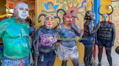 Desde las 8 de la mañana inicia la fiesta en esta localidad ya que salen los famosos diablos aceitados recorriendo las principales calles de esta comunidad lo que ha traído la atención de turismo local y extranjero.