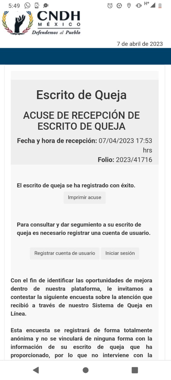 Ante tales hechos la familia de la víctima ha levantado la denuncia número: 2023/41716 ante la Comisión Nacional de Derechos Humanos, en contra de la Secretaría de Seguridad y Protección Ciudadana, por tortura y desaparición.