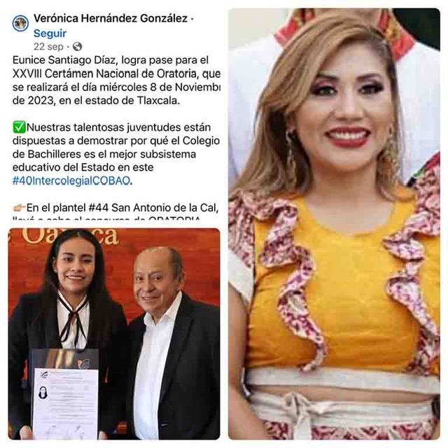 En una entrevista a modo y tratando de justificar la imposición de recomendados y el tráfico de influencias que impera en el Colegio de Bachilleres de Oaxaca, la titular de la dependencia Verónica Hernández, envía a Benjamín Mendez Martínez quien se dice asesor de “oratoria” desde ‘hace años’ sin embargo, ante la falta de argumentos para defender la designación de una tercer participante y no de la ganadora estatal de oratoria para concurso nacional en Tlaxcala, atacó a la joven campeona de oratoria discriminando su mérito.