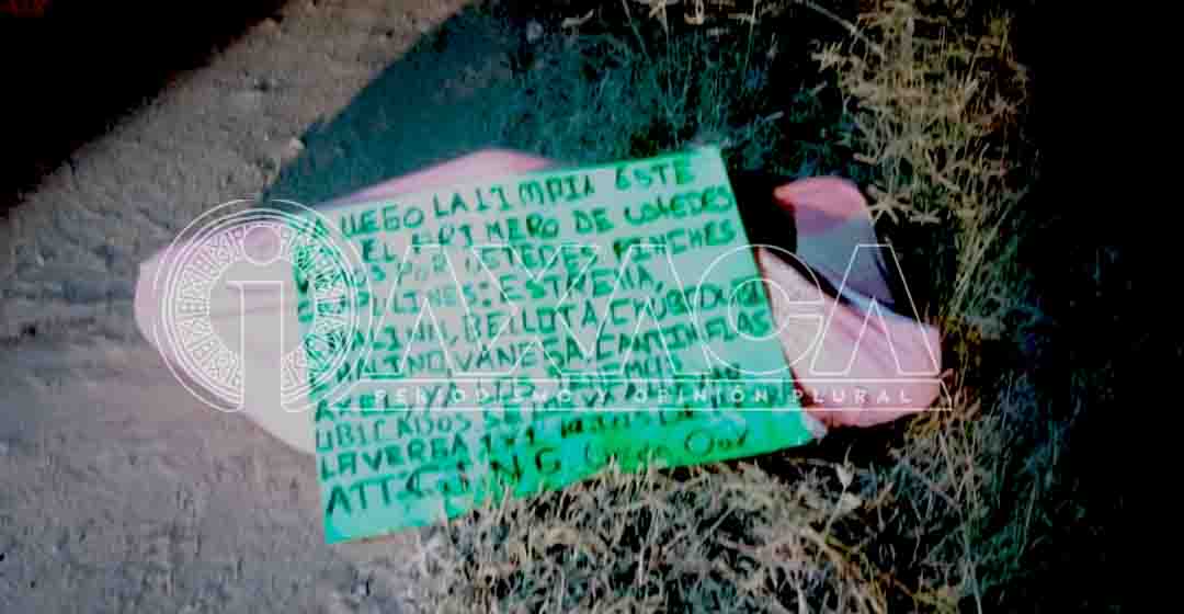 Una persona del sexo masculino fue localizada sin vida en jurisdicción de San Raymundo Jalpan, en los límites con Santa Cruz Xoxocotlán y la Villa de Zaachila, el cuerpo tenia una cartulina con mensaje amenazante.